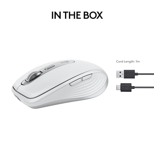 Introducing Logitech MX Anywhere 3S Mouse, a beloved compact wireless mouse with next-level precision and control โ now with 8K DPI Any-Surface Tracking (1) and Quiet Clicks (2) so you can master your work anywhere. MX Anywhere 3S Wireless Mouse Details: Height: 100.5 mm Width: 65 mm Depth: 34.4 mm Weight: 99g Compatibility: Logitech Mouse is compatible with Windows, macOS, Linux, Chrome OS, iPadOS, Android operating systems (8) Long-Lasting: Rechargeable Li-Po (500 mAh) battery; get three hours of use from a one-minute quick charge (8) Sensor Technology: Darkfield High Precision Buttons: 6 buttons (Left/Right-click, Back/Forward, Wheel Mode-Shift, Middle click) Scroll Wheel: Yes, with auto-shift Horizontal Scroll: Yes, by holding the side button while turning the wheel Bluetooth: Bluetooth low energy USB C Mouse: Compatible with Logi Bolt USB Receiver only (not included) Footnotes: (1) 4 mm minimum glass thickness. (2) Compared to a regular Logitech Mouse with default DPI setting. (4) Compared to Logitech Master 2S Mouse with Logitech Options installed and Smooth scrolling enabled. (5) Compared to regular Logitech Mouse without an electromagnetic scroll wheel. (6) The mouse is not compatible with other Logitech USB receivers. (7) Requires Logi Options+ app, available for Windows and macOS. (8) Battery life may vary based on user and computing conditions. (9) Device basic functions will be supported without software for operating systems other than Windows and macOS. (10) Excludes plastic in printed wiring assembly (PWA), receiver, wire, FFC cable, and packaging.