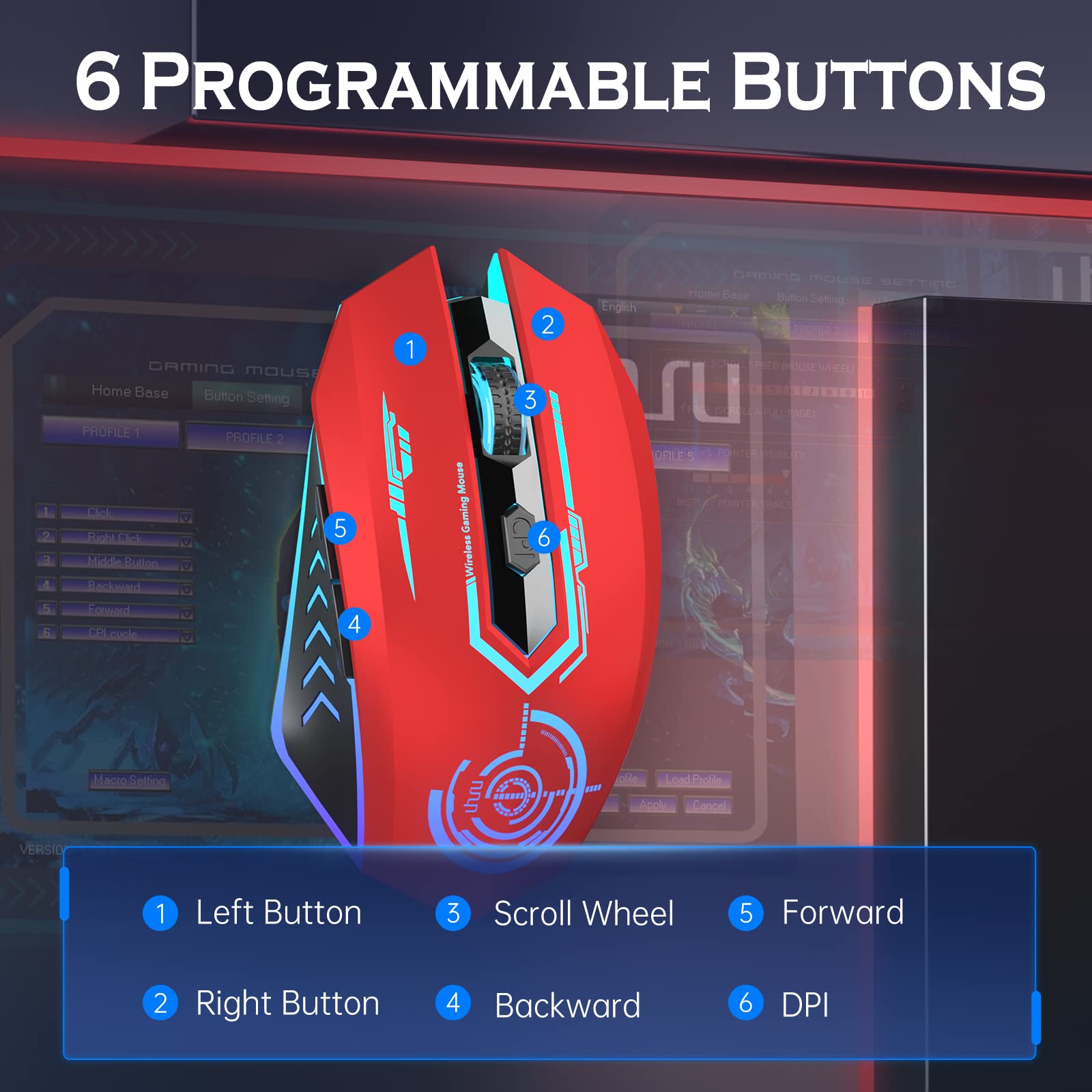 - CONTROL YOUR OWN SPEED AT YOUR WILL - 5 level DPI by pressing the button below the scroll wheel. (1000/1800/3600/5800/12000) You can easily adjust the moving speed, perfect for games and office, and meet your multiple needs. This mouse provides extreme stability while gaming, such as League of Legends, World of Warcraft, DOTA, CS