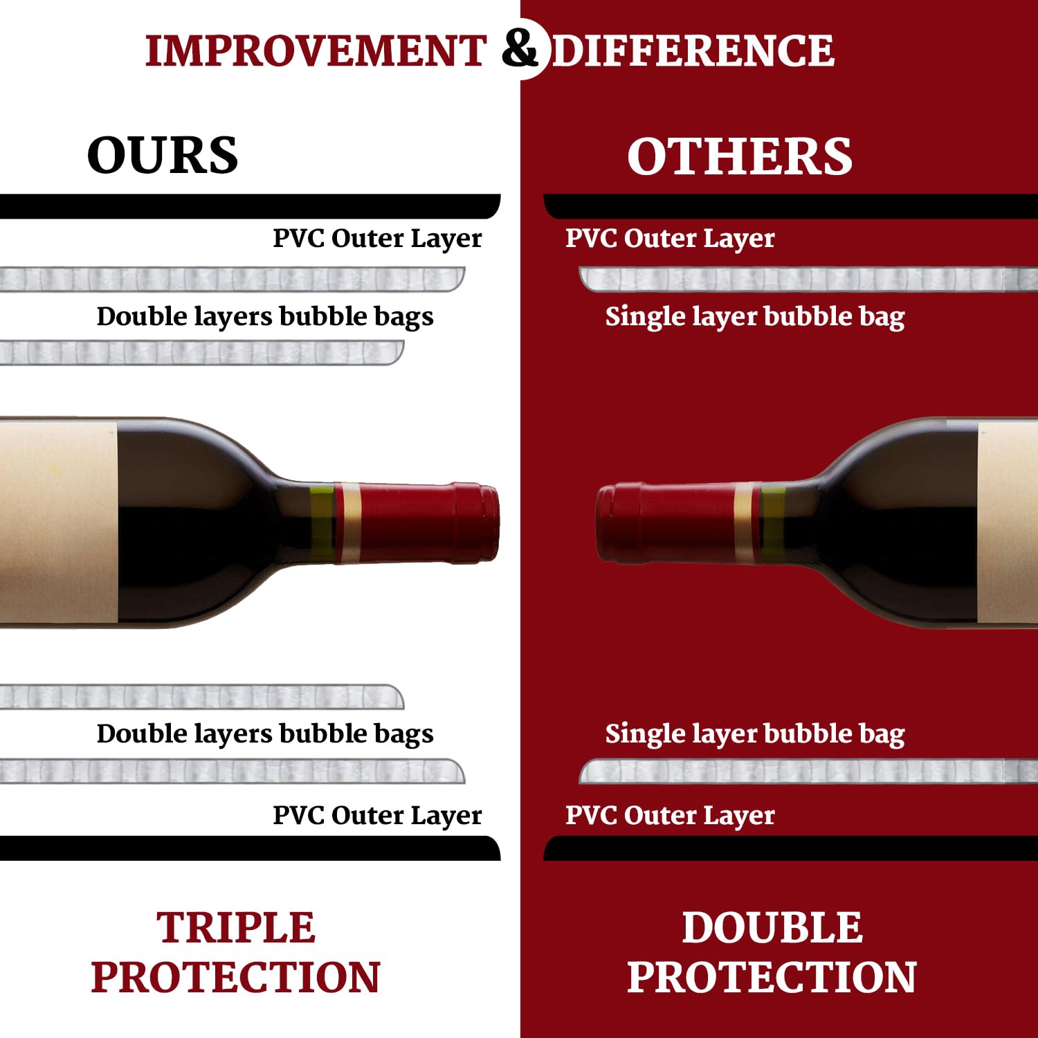 - ★UPGRADED TRIPLE PROTECTION - 4 set (8 pieces) wine travel bags provides the Triple Protection - PVC outer layer + double layers bubble bags. Refer to the 2rd picture