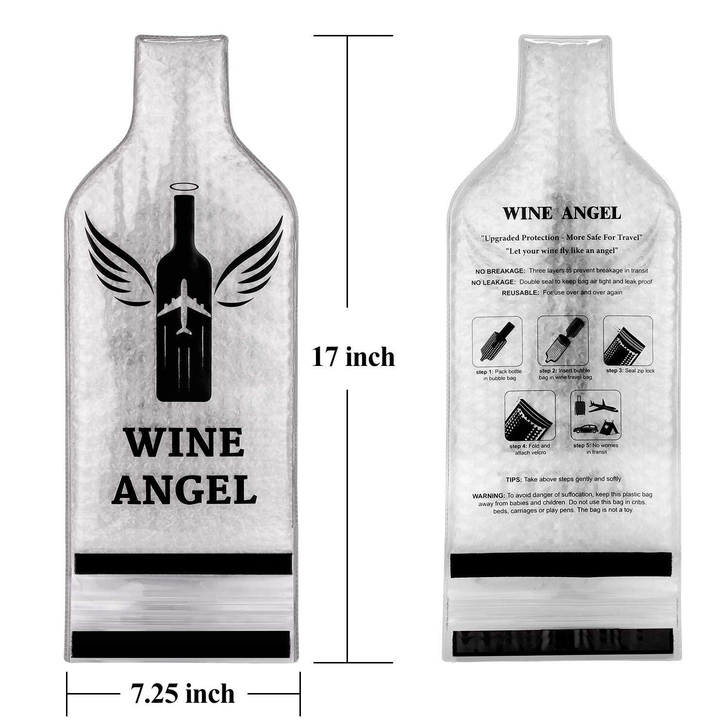 - ★ANTI-IMPACT BOTTLE SLEEVE - Double layers premium thick bubble bags padding provide enclosure for extra cushion, as well as their tough, sturdy, thick vinyl(PVC) exterior wrap to prevent breakage in transit shipping .No worries. LET YOUR WINE FLY LIKE AN ANGEL!
